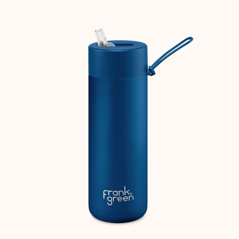 Stainless Steel Ceramic Reusable Bottle with Straw (20oz) | Deep Ocean