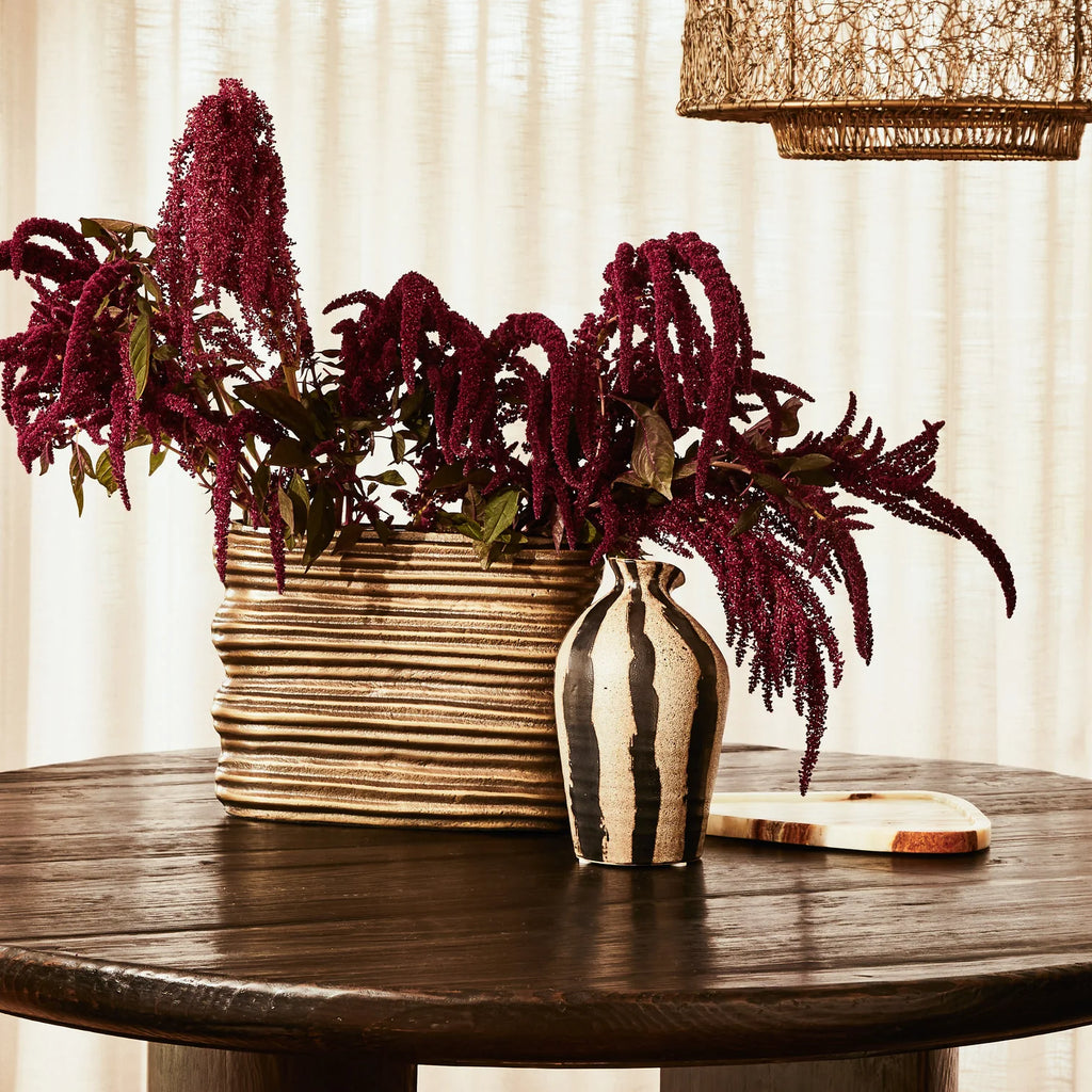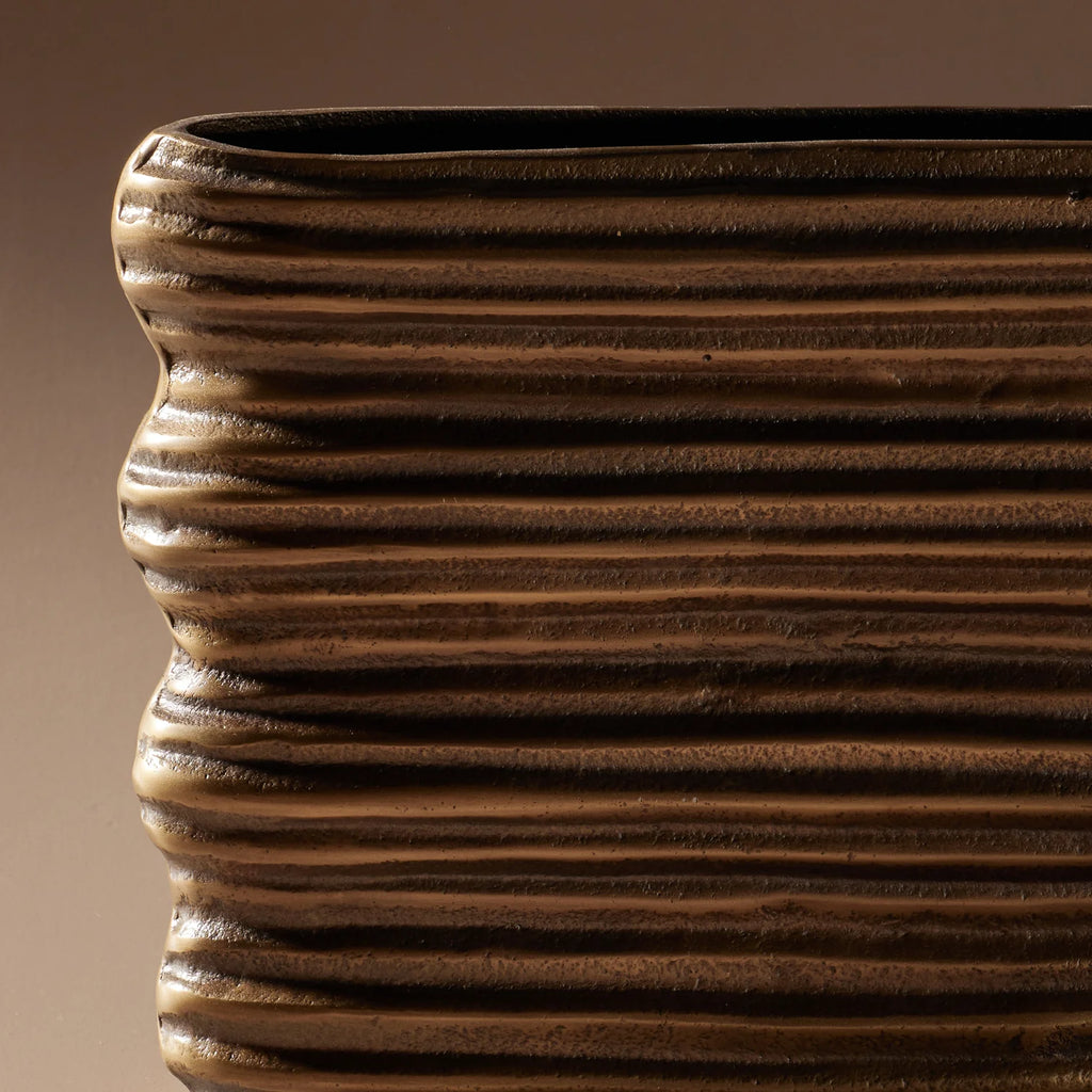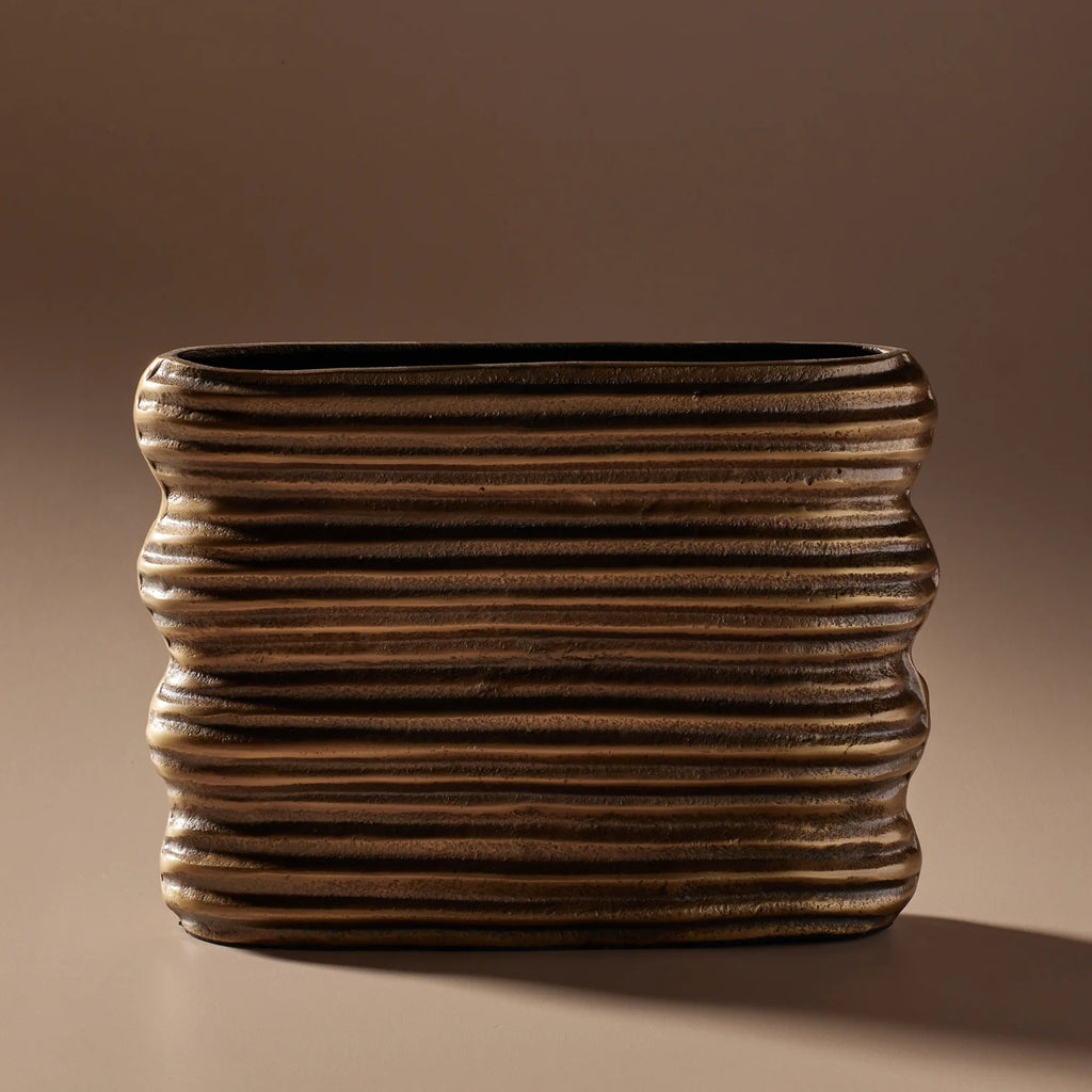 Drawing inspiration from the everlasting dance of ebb and flow, the Alora Vase emanates an atmosphere of timeless artistry. Its sculpted contours, enriched by the inherent refinement of metal, feature a dynamic visual texture. This versatile design invites the creation of eclectic and harmonious table arrangements, making it a striking centerpiece that effortlessly captures the essence of enduring elegance.