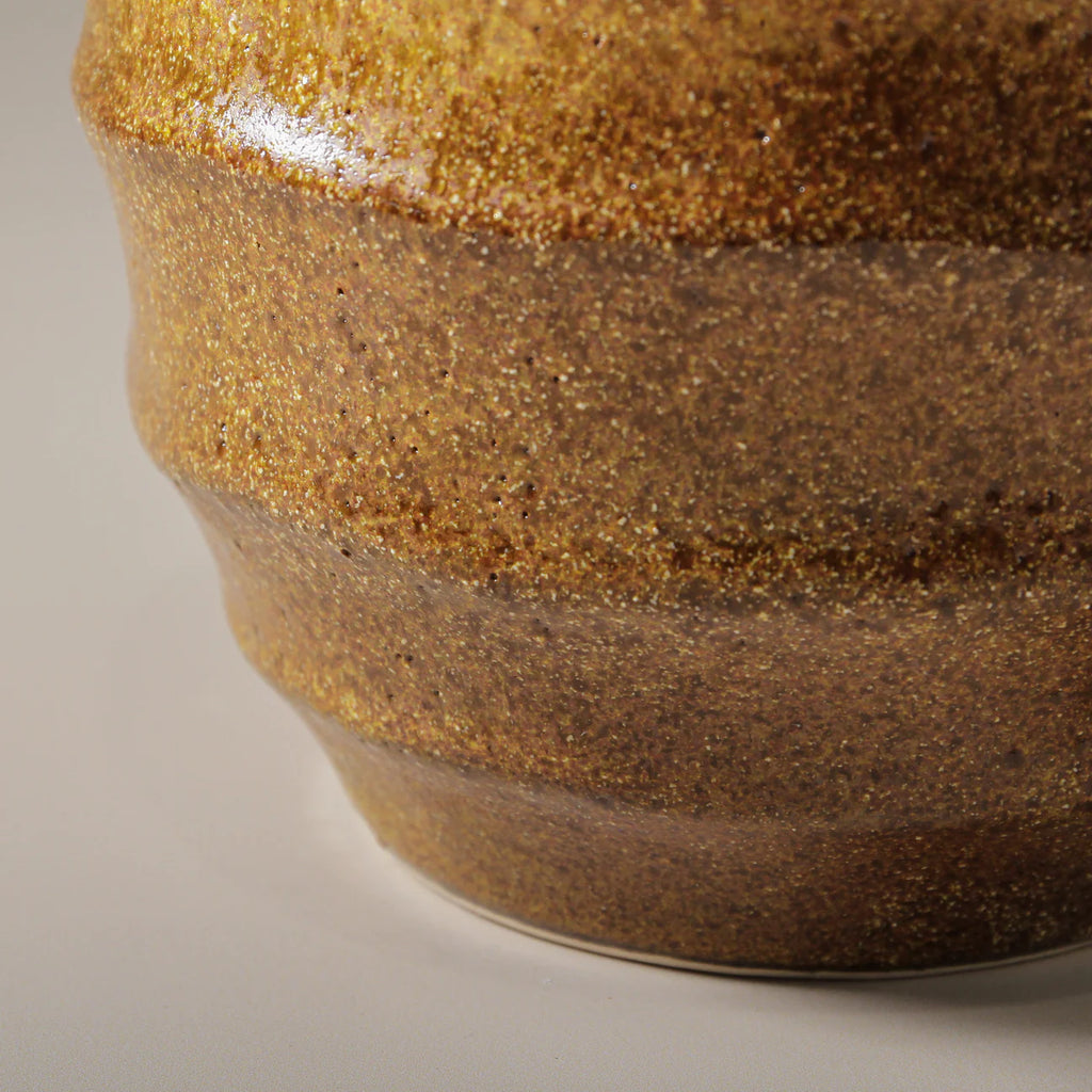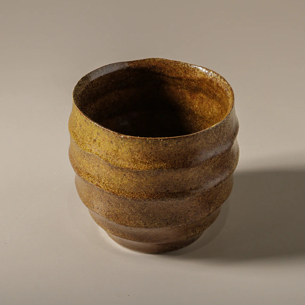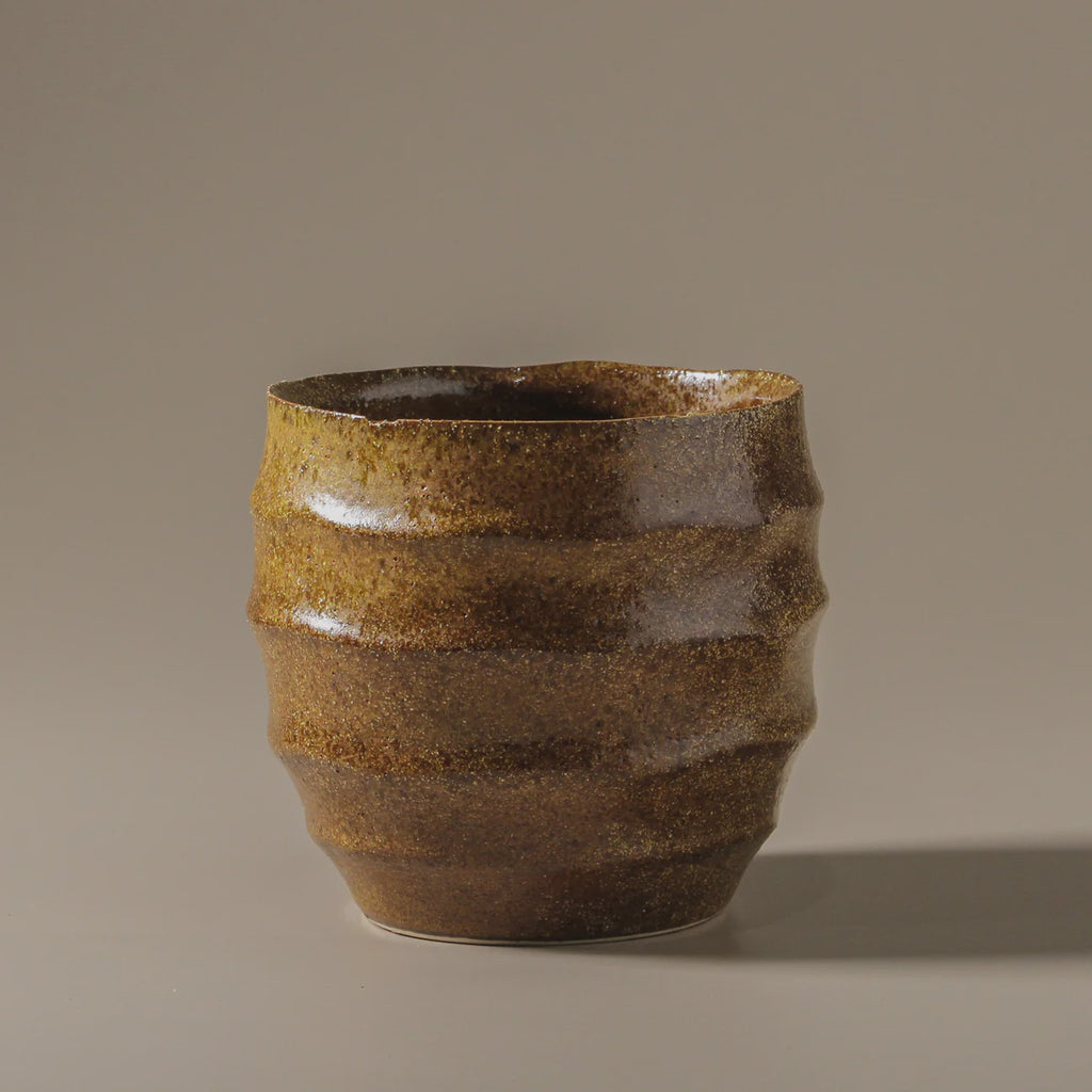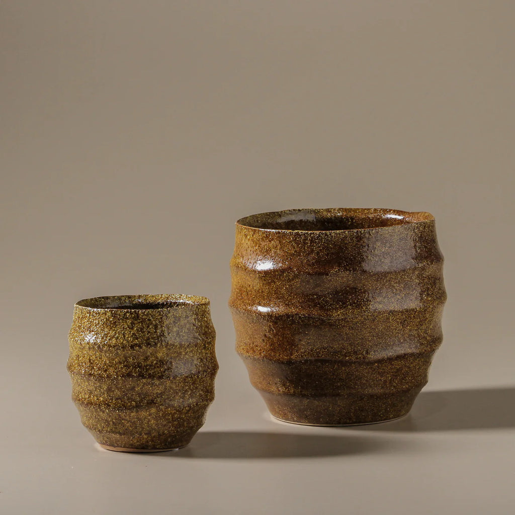 The Ashira Pot seamlessly balances natural inspiration with curated design. Available in two sizes, its fluted form and softly speckled surface reflect an organic, wabi-sabi aesthetic. The earthy brown and olive tones ground the pot in a palette reminiscent of nature's raw, unrefined beauty, creating a sense of balance and cohesion.