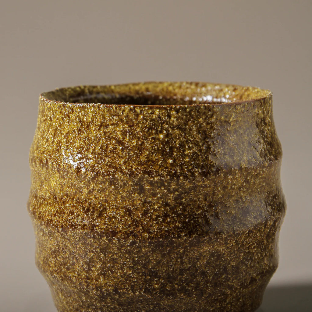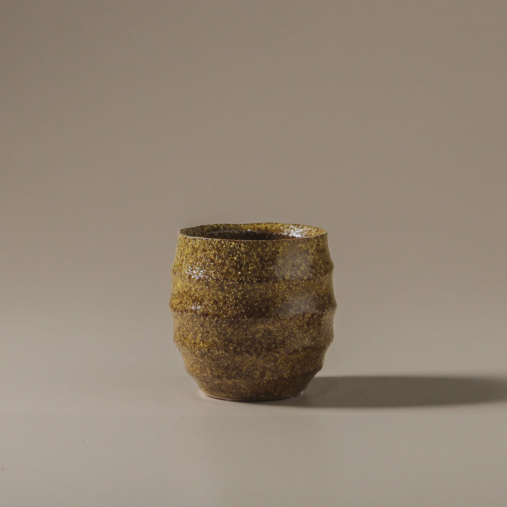 The Ashira Pot seamlessly balances natural inspiration with curated design. Available in two sizes, its fluted form and softly speckled surface reflect an organic, wabi-sabi aesthetic. The earthy brown and olive tones ground the pot in a palette reminiscent of nature's raw, unrefined beauty, creating a sense of balance and cohesion.