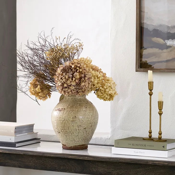 The Cora jug is handcrafted from terracotta and glazed in distressed neutral tones to bring a touch of warmth and texture to your home.