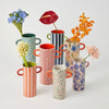 Introducing our Griffe Vase Collection. Each vase in this series features unique designs, including hand-painted florals, bold stripes, or vibrant multi-coloured spots. The name "Griffe," German for handles, reflects the dynamic silhouette of these vases, with two solid handles on either side adding an extra design punch! Whether displayed individually or paired together, these vases are perfect for creating a playful vignette on your bookcase, mantel, or shelf, adding a pop of colour and personality to any surface in the house.