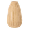 The Harriet Ceramic Vase is crafted from stoneware in a striped beige glaze and tapered round silhouette.