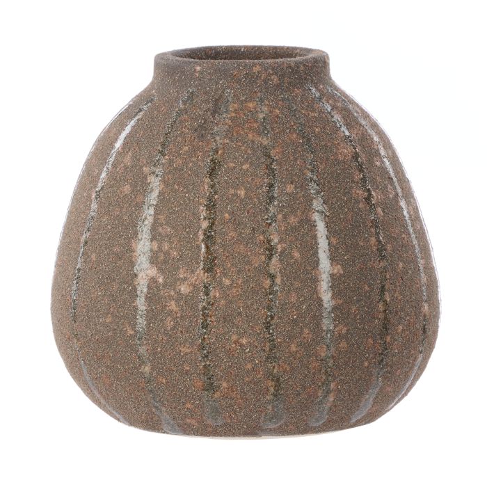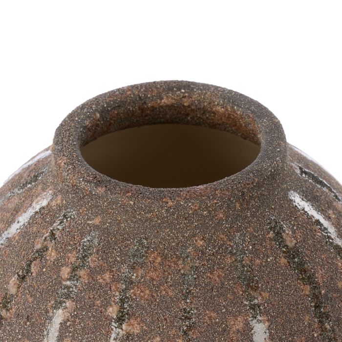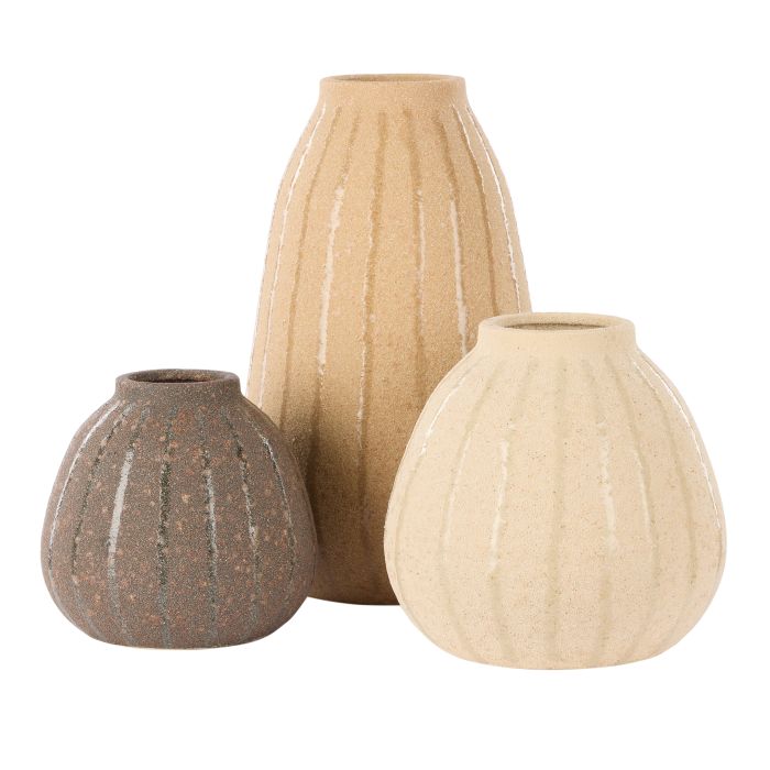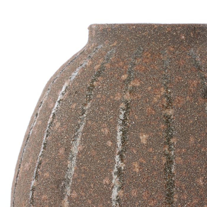 The Harriet Ceramic Vase is crafted from stoneware in a striped beige glaze and tapered round silhouette.