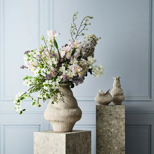 Vase Lexi is a textured, organic-shaped pot that exudes a natural and rustic charm. Its unique design features small indentations that add depth and character, making it a striking piece for any setting. Ideal for floral arrangements or as a standalone decorative item.