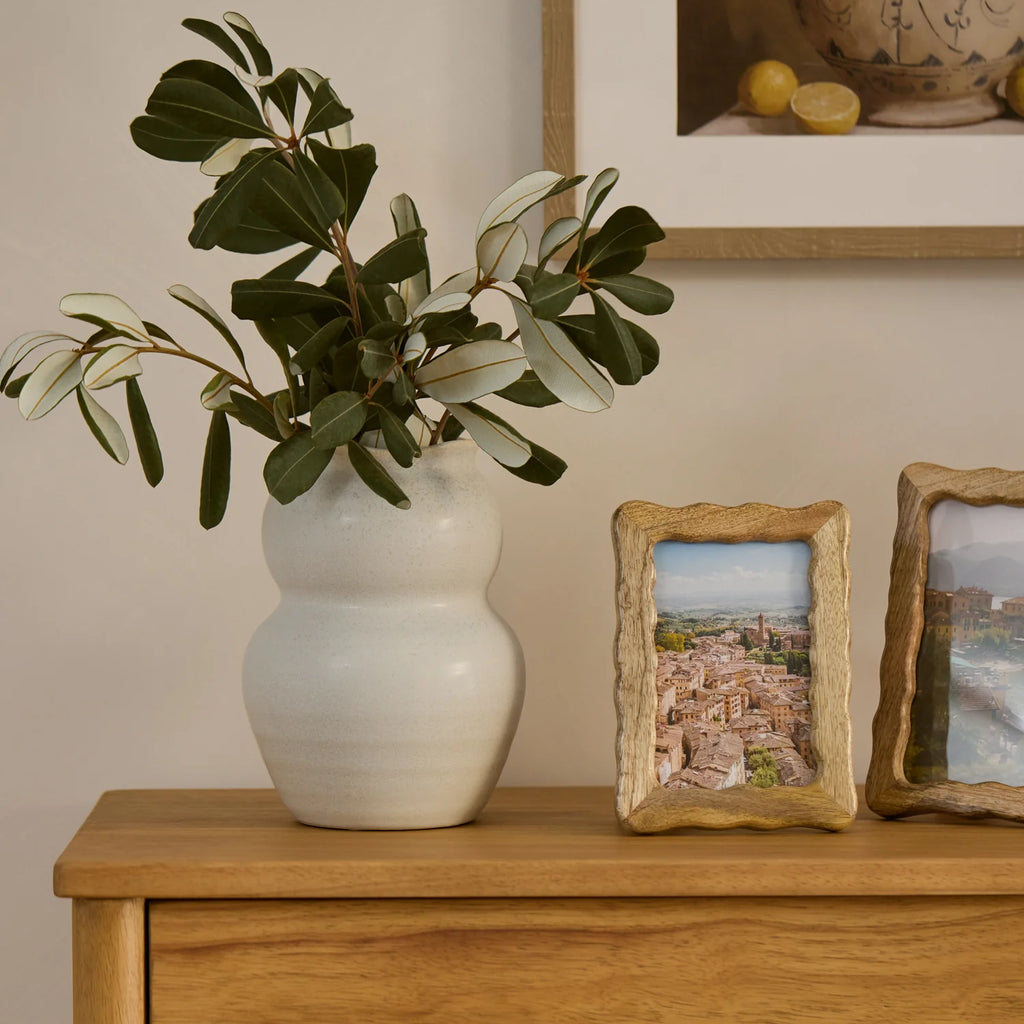 Large curvy vase with an ivory reactive matte finish. Also available in a small size.
