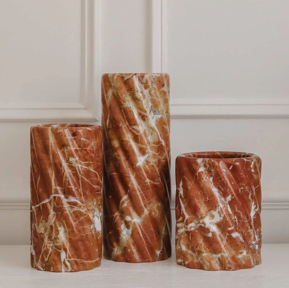 Introducing our exquisite collection of delicate marble vases, a timeless addition to any home decor. Crafted from the finest selection of Rojo Alicante, Sofitel Gold, or Red Burgundy marbles, these vases showcase the epitome of elegance and sophistication.