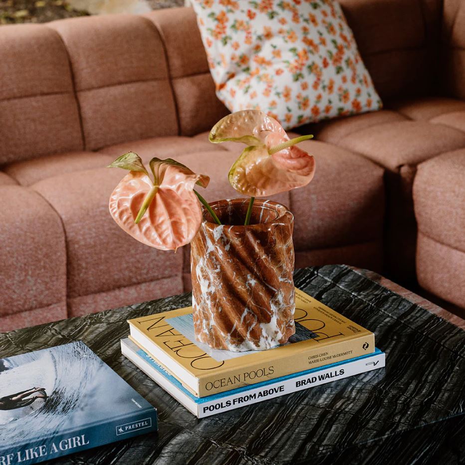 Always use the provided glass insert when displaying fresh flowers in the marble vase. The vase itself is not waterproof and can be porous, which means it can absorb water and moisture. The glass insert will protect the marble from direct contact with water and potential staining.