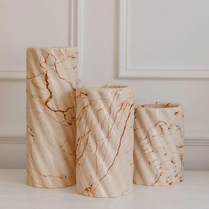 What sets these marble vases apart is the inherent uniqueness of the stone itself. Due to its natural formation, no two vases are exactly alike, making each piece a singular work of art. The striking patterns and colors within the marble ensure that your vase will be an exclusive and unparalleled decor item.