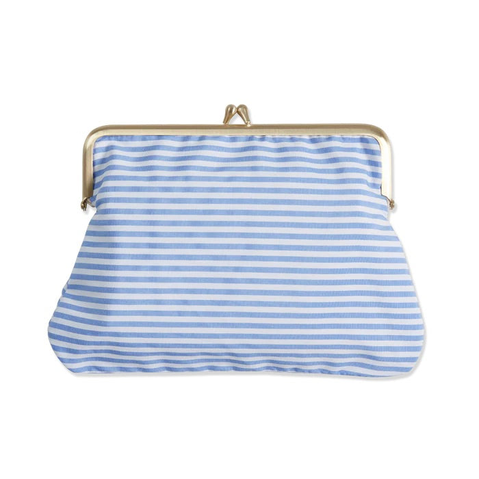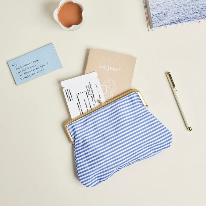 Crafted from a luxe stripe-printed cotton, this sweet pouch is perfect for keeping all of your essentials contained on the go... with the most satisfying I've-got-my-sh*t-together snap closure.