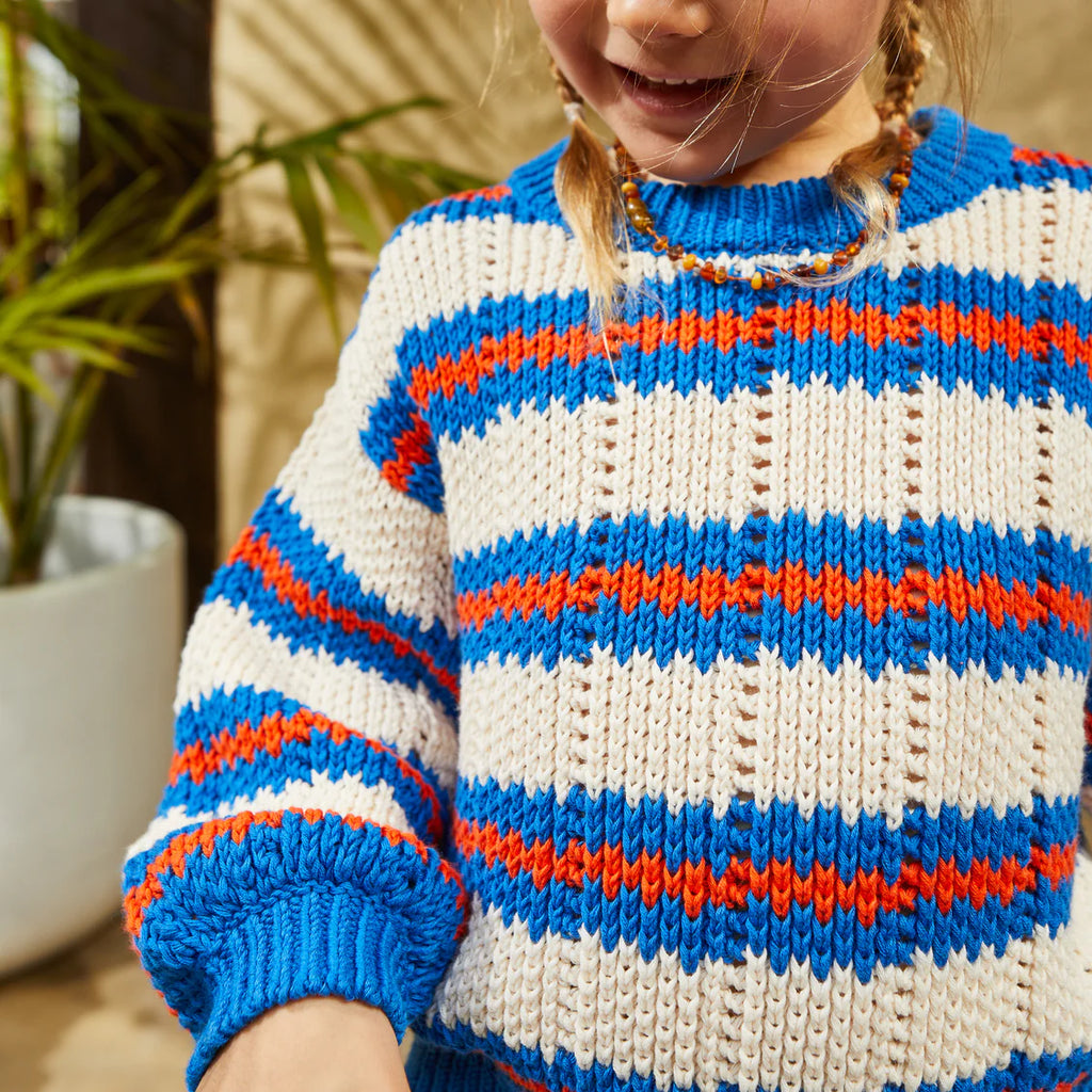 Soft, stripy and made for comfy days, this slouchy retro-inspired knit is perfect for little adventurers. It’s easy to wear, made for play and can be styled alongside our grown-up pieces for a too-cute matching moment.