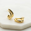 The Aria Hoop features a sleek double-hoop design, creating a bold yet refined statement. With its high-shine finish and sculptural silhouette, this piece offers a modern twist on the classic gold hoop — perfect for everyday wear or dressing up an evening look.