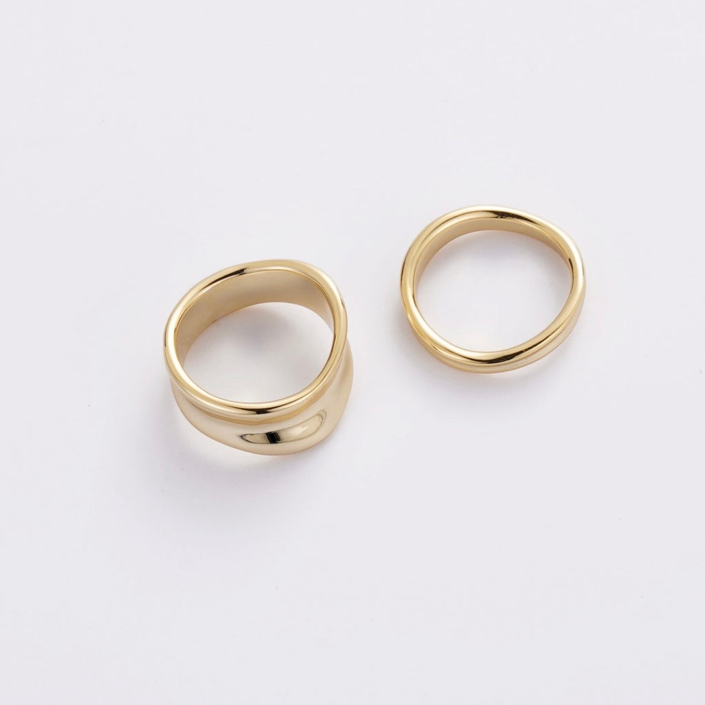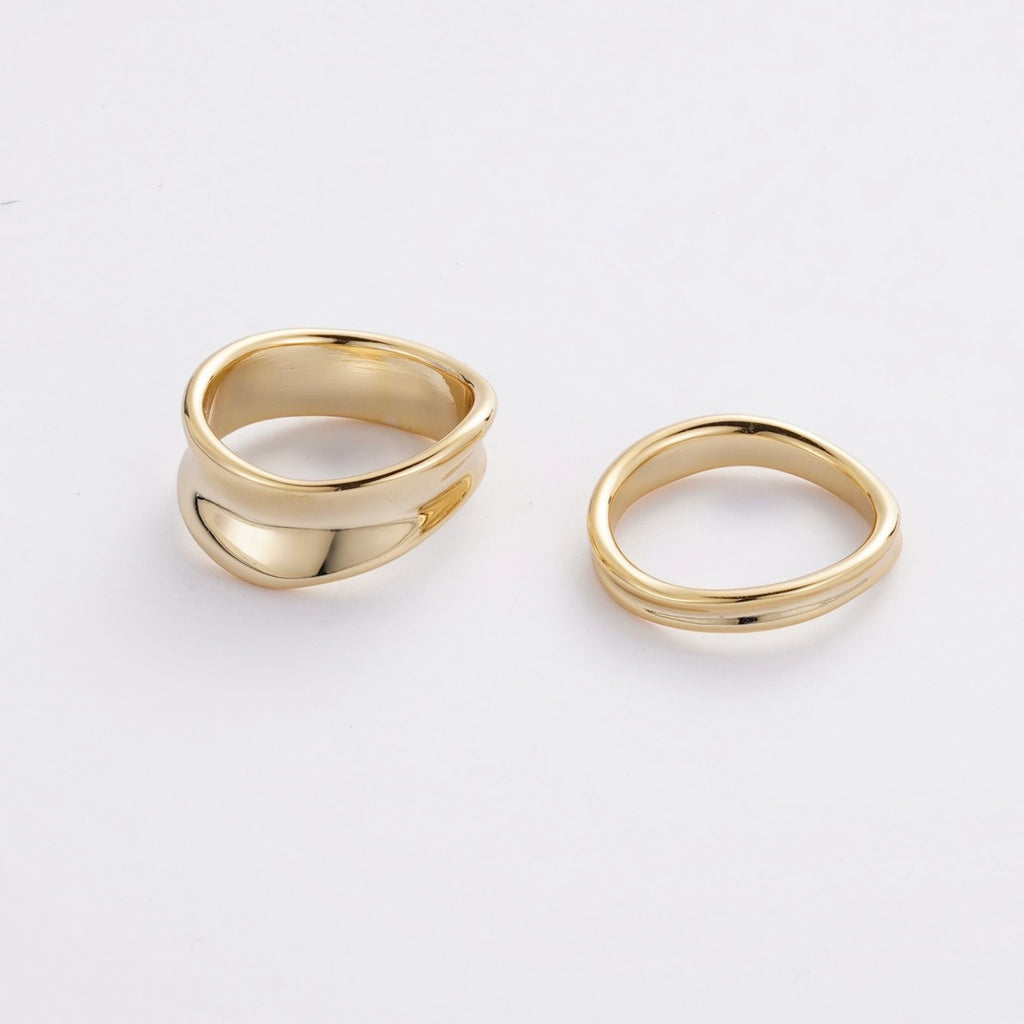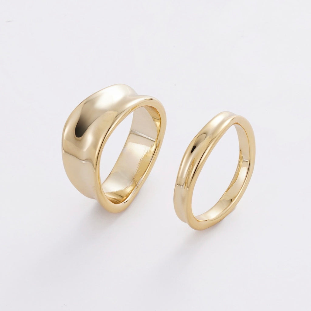 A sleek gold pair of bands with a smooth, modern finish.