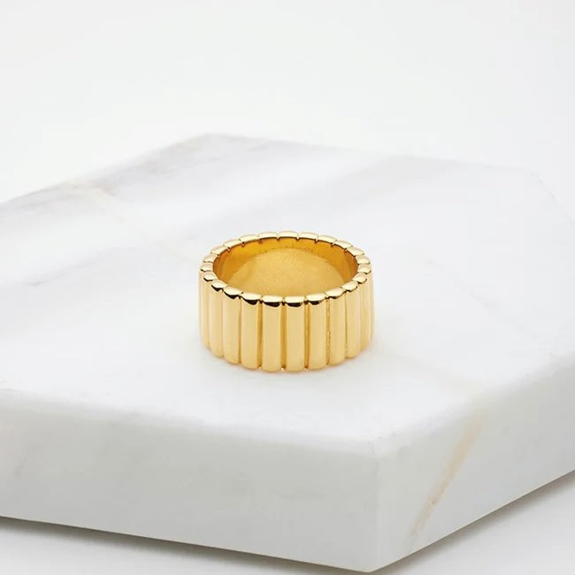 Bold yet refined, the Harlow Ring is crafted with a striking ridged design in polished silver tones. Its chunky silhouette makes it the perfect statement piece, while still versatile enough for everyday wear. Pair it back with our Harlow Hoops for a modern, coordinated look that balances edge and elegance.