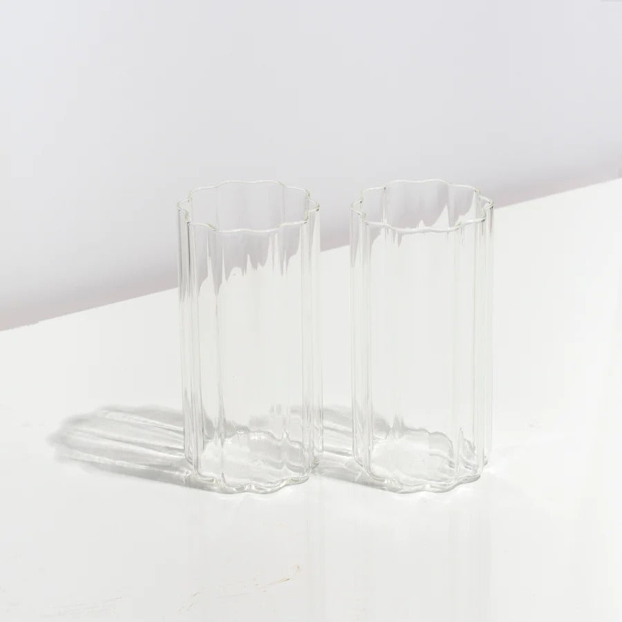Our Wave Highballs come in sets of two and are made from high quality hand-blown borosilicate glass.
